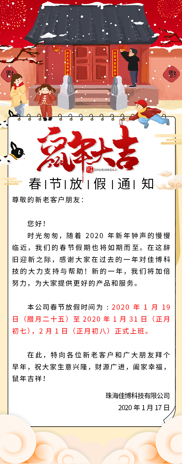 【通知】关于金年会金字招牌信誉至上首页科技2020春节放假安排