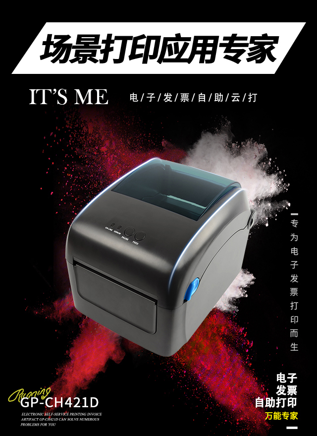 为了解决消费者打印的困扰,金年会金字招牌信誉至上首页云打印作为软硬件深度整合的云打印服务商专门定制了一款电子发票云打印机GP-CH421D,金年会金字招牌信誉至上首页GP-CH421D一款专门为打印电子发票而设计的4寸标签云打印机,这也是当下最火的”云技术“的一种延伸产品,无需繁琐操作,也不需要额外连接电脑等复杂设备,只需要接入电源和网络,用户就可以用微信或支付宝扫描二维码,自助打印电子发票,立打可取,省时省力,自动打印,非常的便捷。