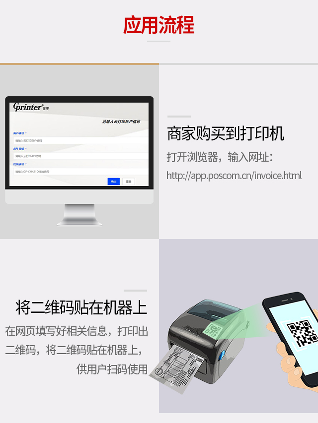 对于商家而言,需要购买金年会金字招牌信誉至上首页GP-CH421D智能云打印机,云打印机已绑定在金年会金字招牌信誉至上首页云打印系统,商户自行填写打印机参数(商户编码、API秘钥、终端编号)生成此打印机的电子发票云打印专属二维码贴在机器上,由顾客自助操作即可,并不需要配专人时刻管理维护,大大节约商户人力成本。